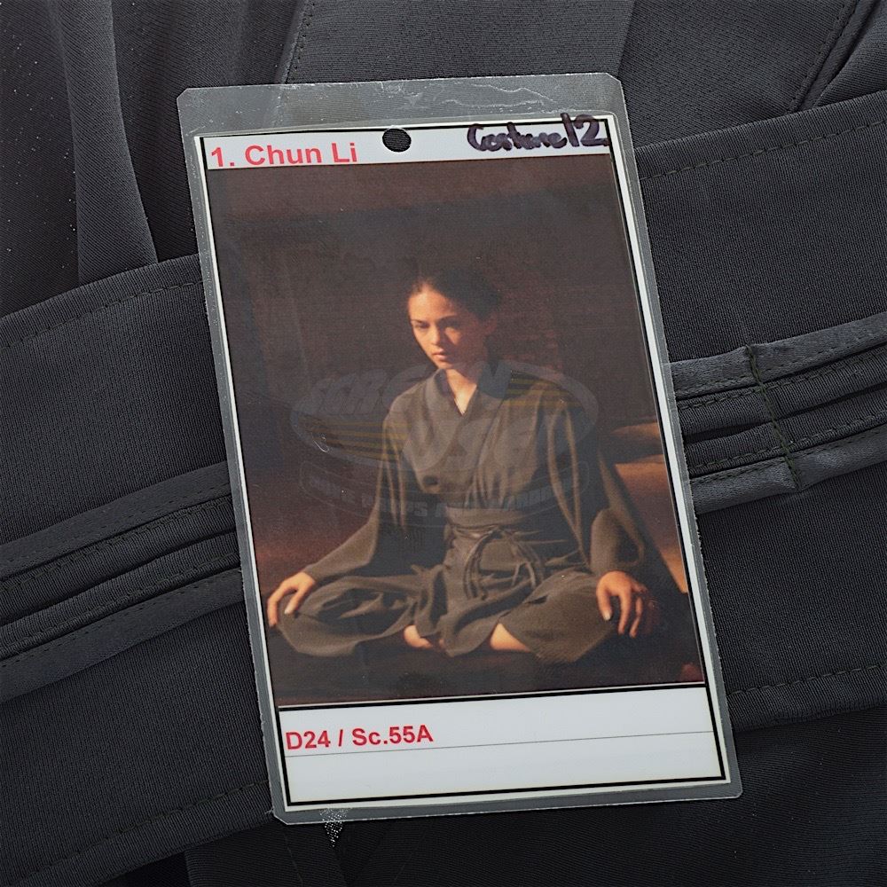 (Hyde Park Entertainment, 2009) This outfit was acquired by the production for use by Kristen Kreuk as "Chun-Li". The outfit consists of a Kimono, trousers and obi. Included with the outfit is a production used costume tag that details the entire costume and scene numbers used and features an attached image of Kristen Kreuk wearing the outfit. The size is unknown.