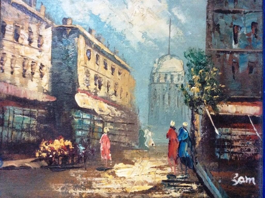 Original/reproduction: Original Date Of Creation: Unknown Listed By: Dealer Or Reseller Region Of Origin: Africa Signed Painting Painting Surface: Canvas Medium: Oil Features: Signed Style: Expressionism Originality: Original Size Type/largest Dimension: Small (up To 14in.). Nice Street Scene. Signed "sam". Framed & Signed. Nice Blue Wooden Frame. Good Vintage Condition Size: Unframed 9.4"x7.6" Framed 12.4"x 7.6". - 9164-020118-EB-61276