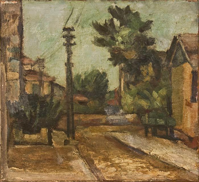 Street in Tel Aviv, signed, dated 38 and titled "Tel Aviv" (lower right)