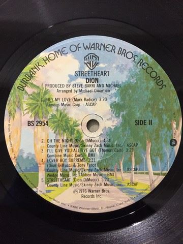 "Streetheart by Dion" (1976) vinyl record, 11 songs between both sides, songs include "Runaway man", "Queen of '59", "Streetheart", etc., Dion autograph on album cover with personal message stating "To Jim, all the best. Always Dion".