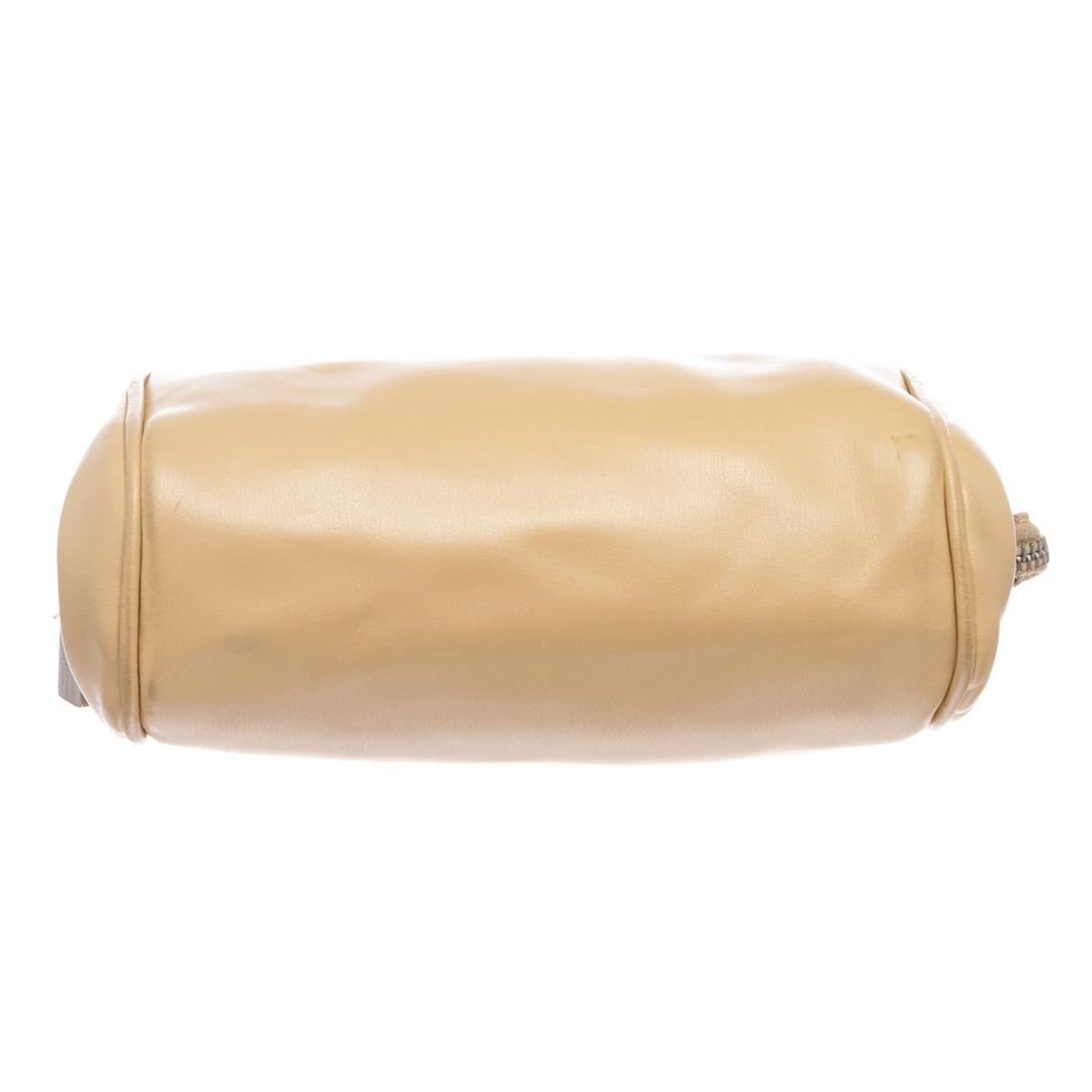 Overall zipper closure. Interior is fabric lined with one side slip pocket. Item is pre-owned. Item Dimensions: 7.25"x2.75"x5"/18.4cmx6.9cmx12.7cm.