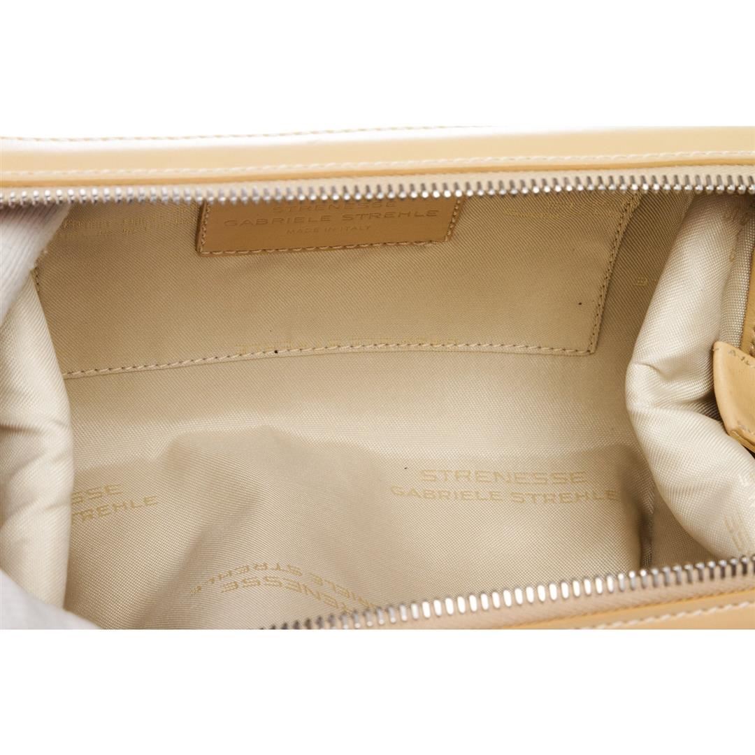 Overall zipper closure. Interior is fabric lined with one side slip pocket.