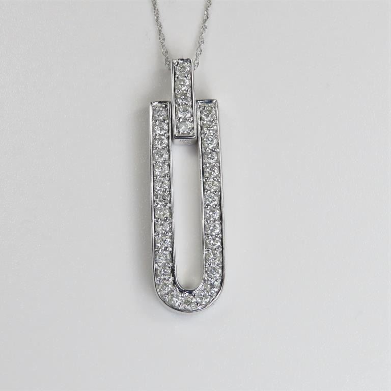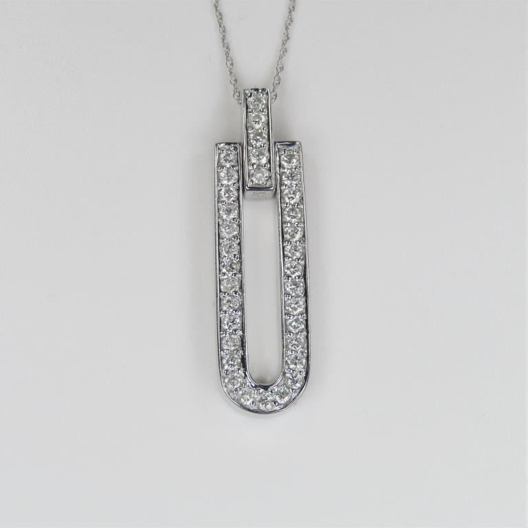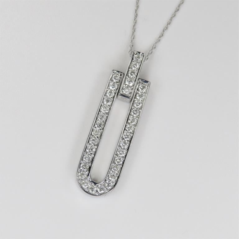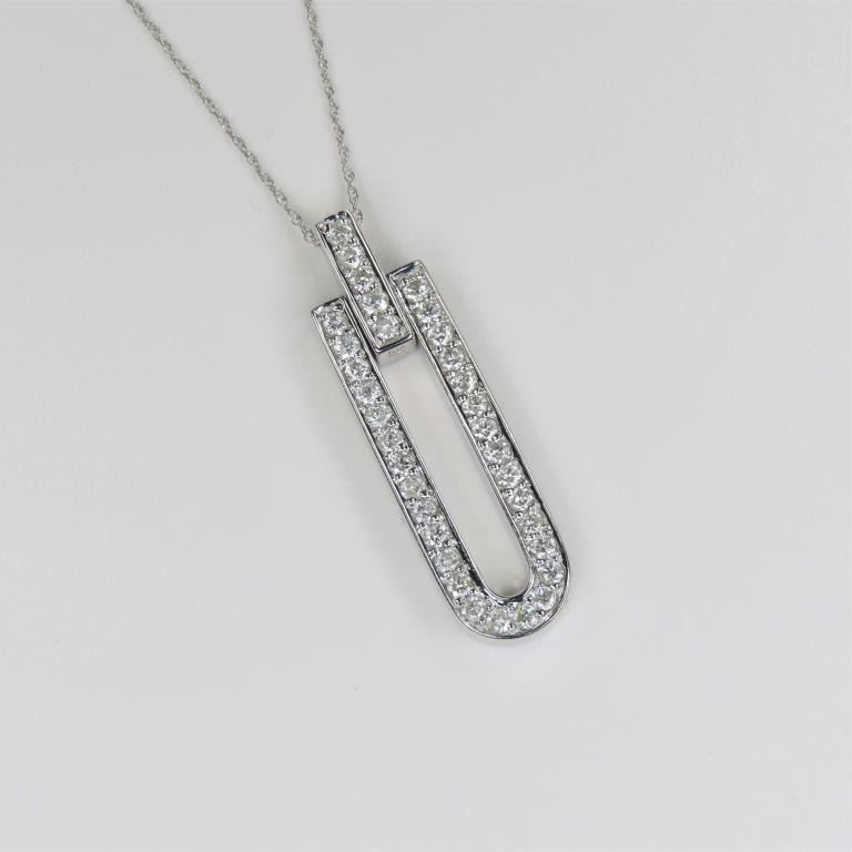 featuring 34 round cut Diamonds weighing approx. 1.20 carats with F-G colors and VS clarity set in a modern designer style 18 karat white gold setting measuring 1¼” inch. in length. Retail $4,000-$5,000