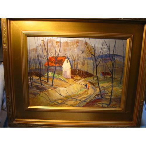 This painting is vibrant, beautiful with primary colors. it is delightful. it has village scene with striking colored landscape. blue and red is the focal point. it is EXQUISITE. it is singed by Abbe Rose Cox (information can be found on ask art and art price). this is an incredible high quality painting.you must see it to beleive how gorgious this painting is and can assessorise every room in the house.it is just wonderful!!!