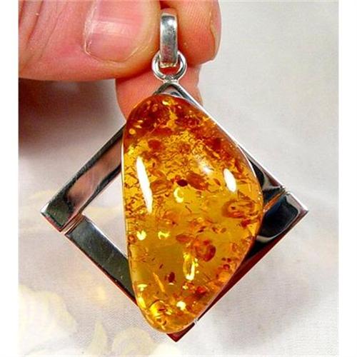 Strikingly Modern Baltic Amber Sterling Pendant is simply awesome and very large weighing 22.2 Grams and full of glorious inclusions. Measurements are 55x49x12mm excluding the bail. For those not familiar with metric 25mm=1".