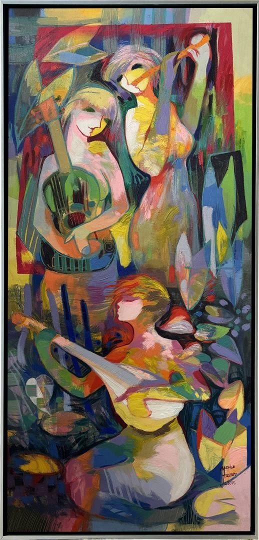 Stunningly beautiful original acrylic on canvas, hand signed by the artist, Jessica Palacios. This 28x60" painting comes framed