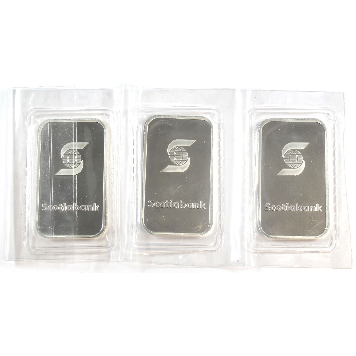 Strip of 3 Scotiabank 1oz Fine Silver Bars- Sealed (Tax Exempt) 3pcs.