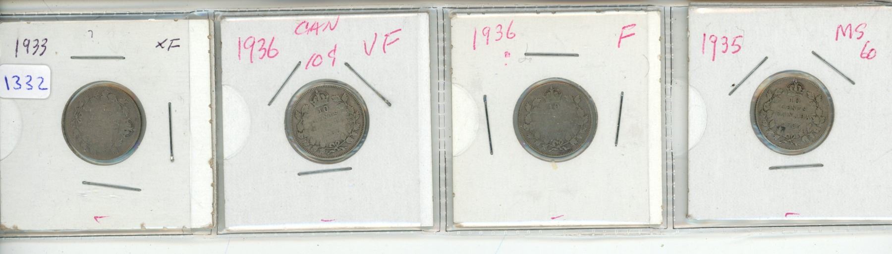 Strip of 4 Canadian Ten Cent Coins.
