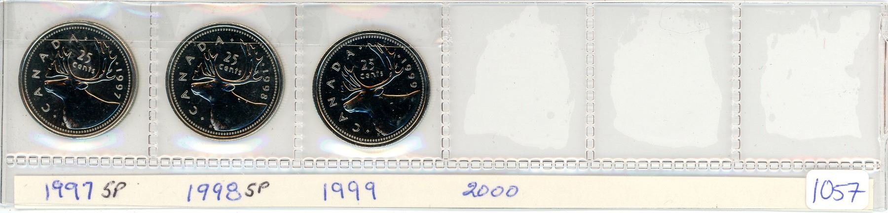 Strip of Canadian Uncirculated Twenty-Five Cent Coins