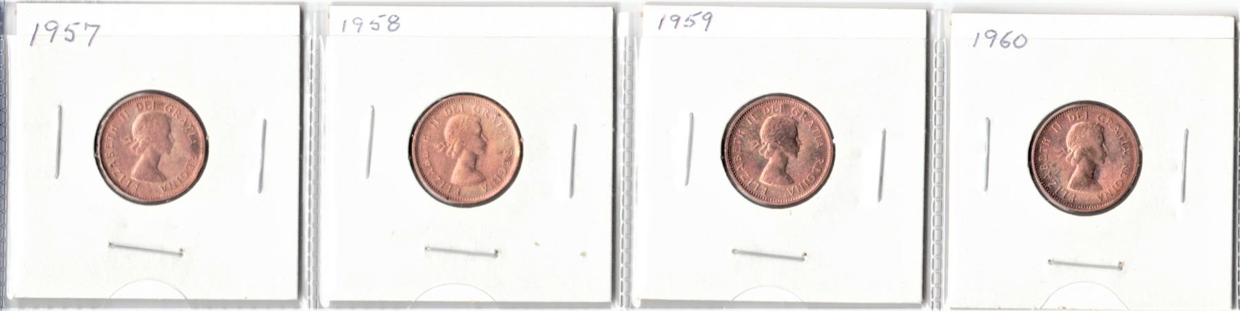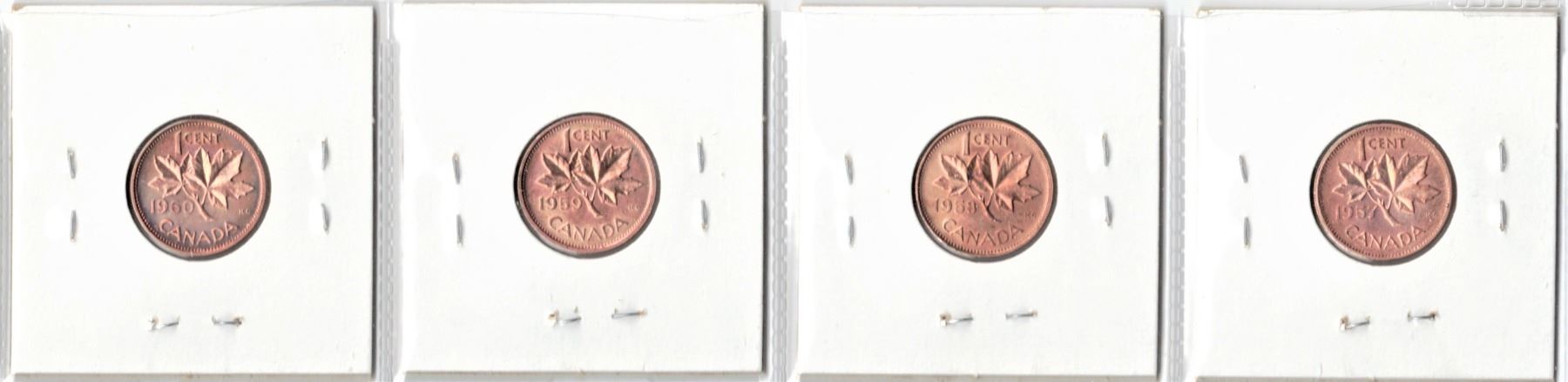 Strip of Four Canadian Cents "Uncirculated" 1957-1960