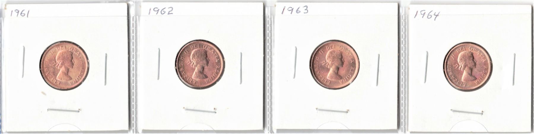 Strip of Four Canadian Cents "Uncirculated" 1961-1964