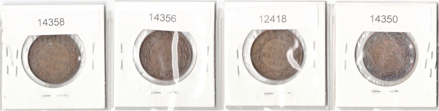 Strip of Four Canadian Large Cents - 1916, 1919, 1919, 1920