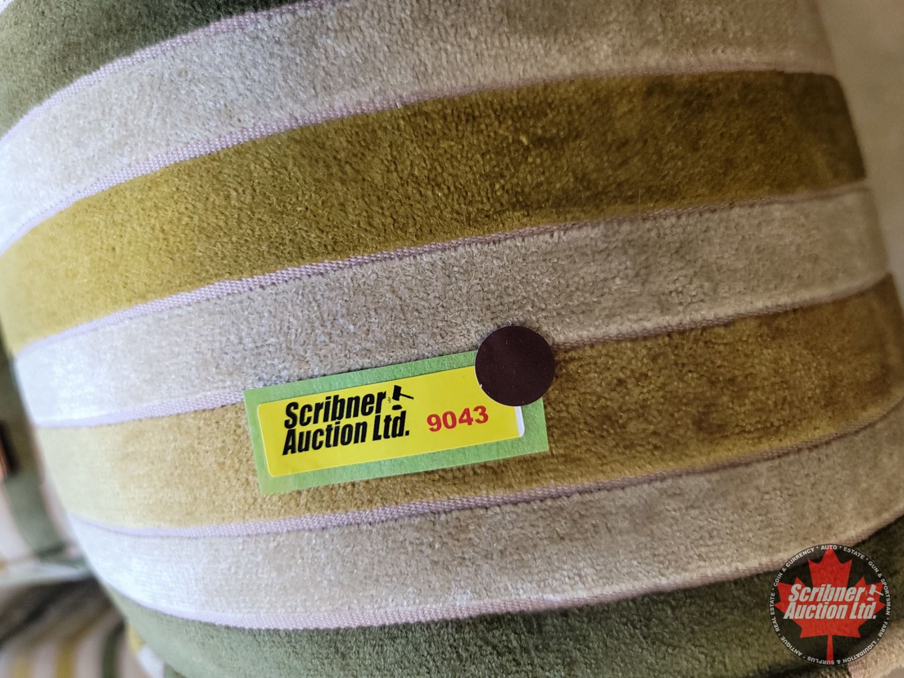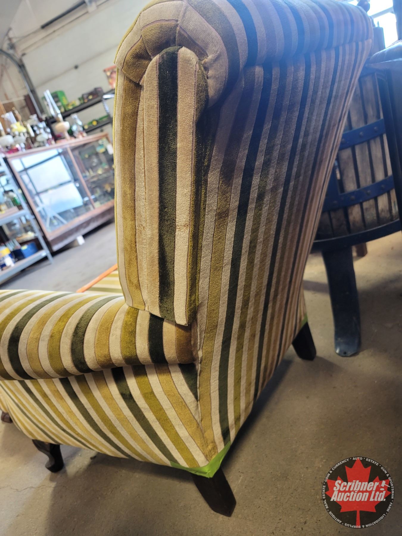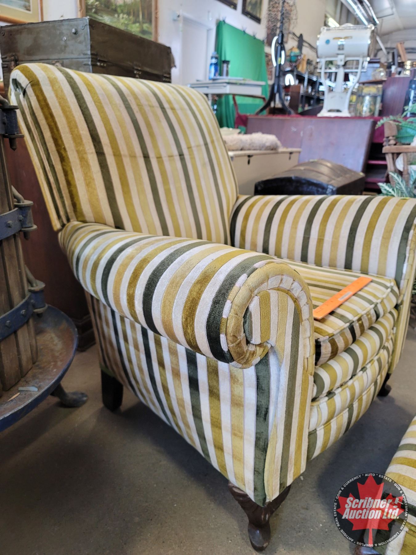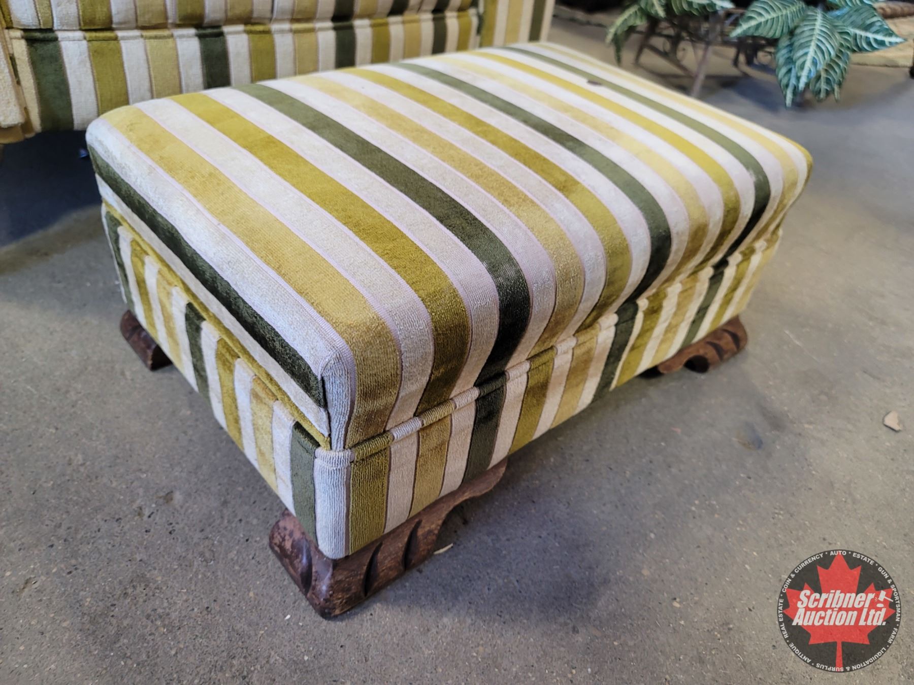 Striped Arm Chair with Footstool (Chair Measures: 35"H x 38"W x 35"D) (Needs Cleaning / TLC) (SEE PICS!)