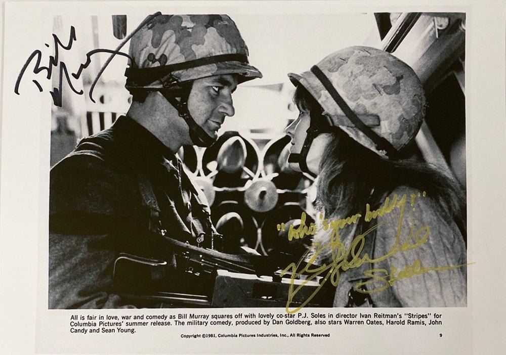 Stripes Bill Murray and P. J. Soles facsimile signed movie photo. 8x10 inches. This item is a reprint of an original autograph