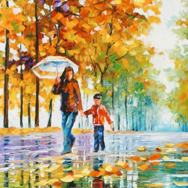 Leonid Afremov's (1955-2019) masterful use of color and texture make his paintings unique collectibles that are sure to brighten any wall. "Stroll in an Autumn Park" is a limited edition giclee on canvas. The piece is numbered and bears the artist's authorized signature. This piece comes gallery wrapped. Includes Letter of Authenticity. Measures approx. 18" x 24" (image). This item requires special handling and may have a longer than usual turnaround.