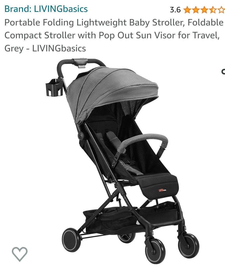 Foldable baby stroller with extendable sun visor, convenient for travel, grey color, new.