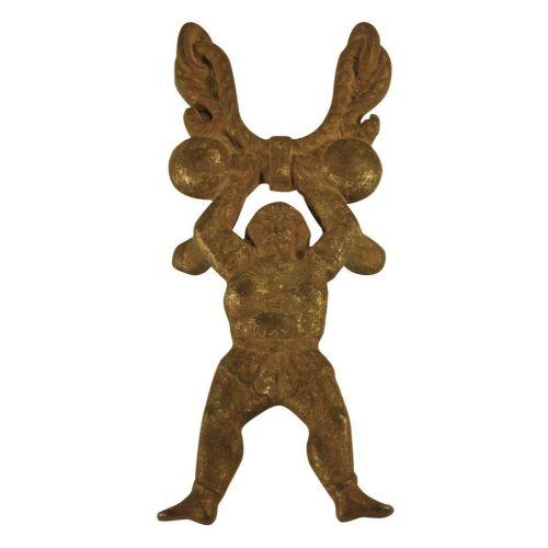 Cast iron boot jack, in the shape of a strong man body builder. No paint, good condition. 9 inches long.