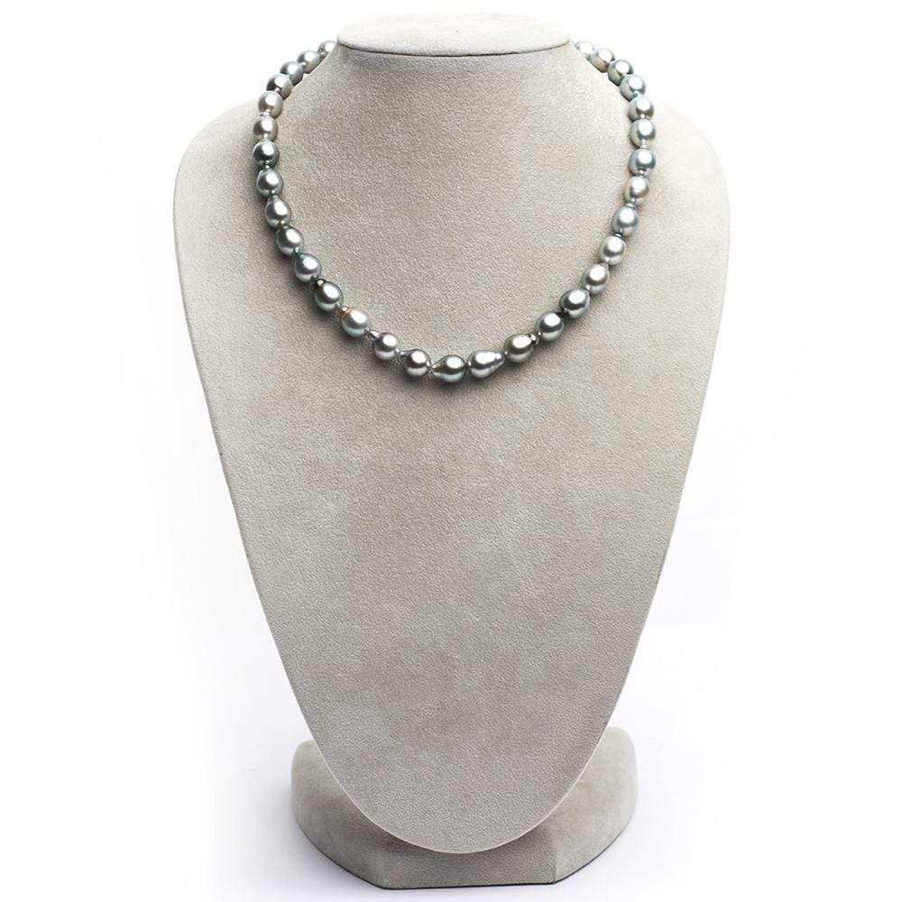 Strong Silver and Pale Aquamarine Tahitian Baroque Pearl Necklace, 18-Inch, 8.2-9.0mm, AA+ Quality