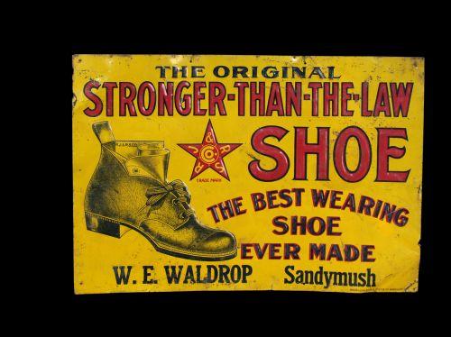 "Stronger than The Law Shoe" Tin Embossed Sign 13 x 20 "