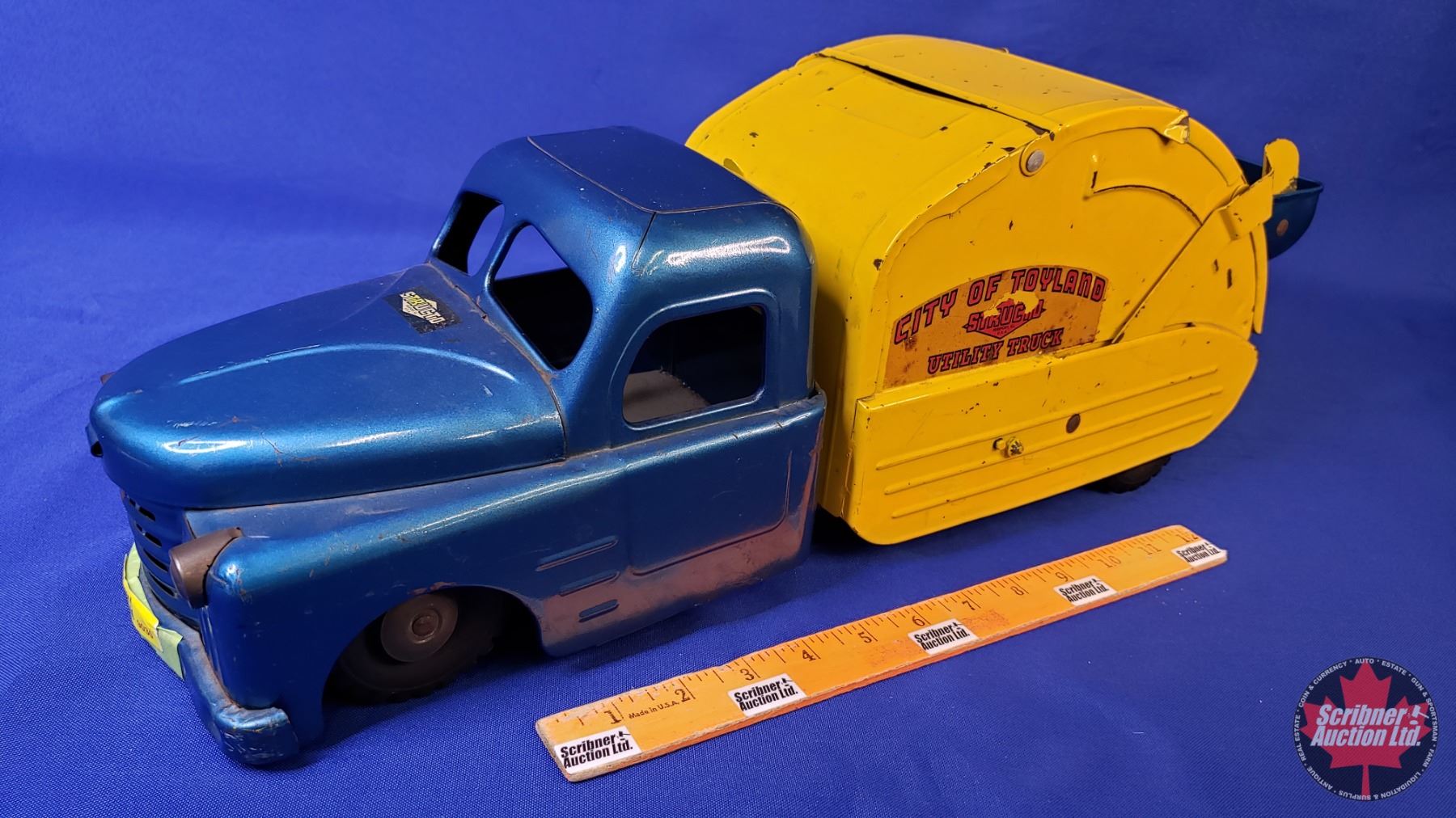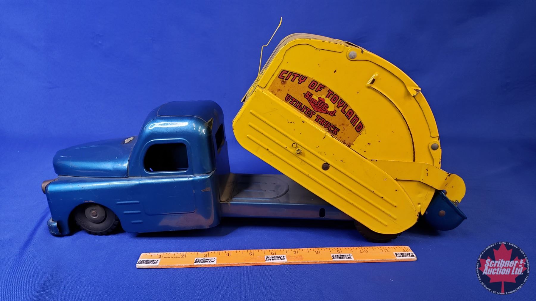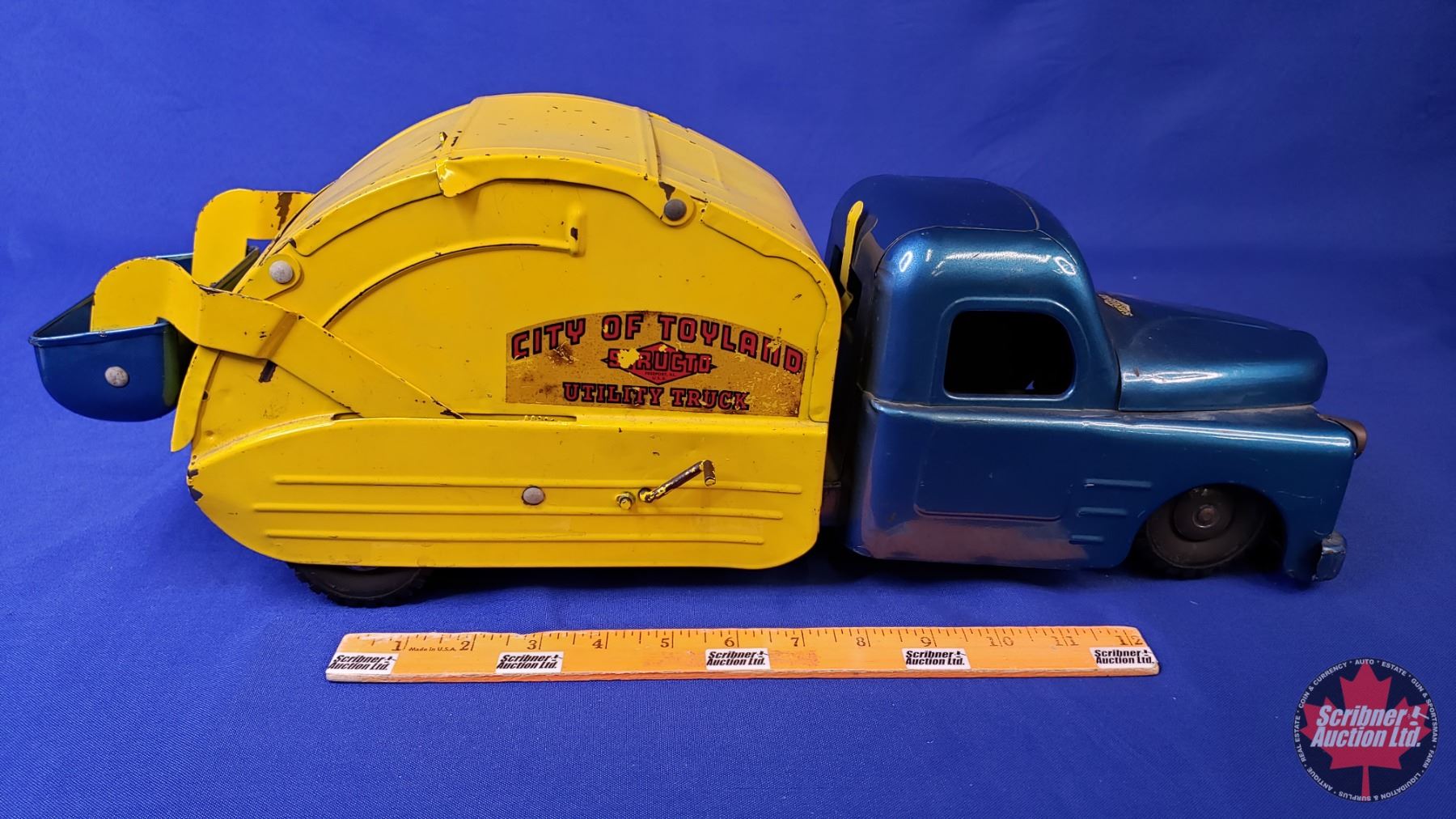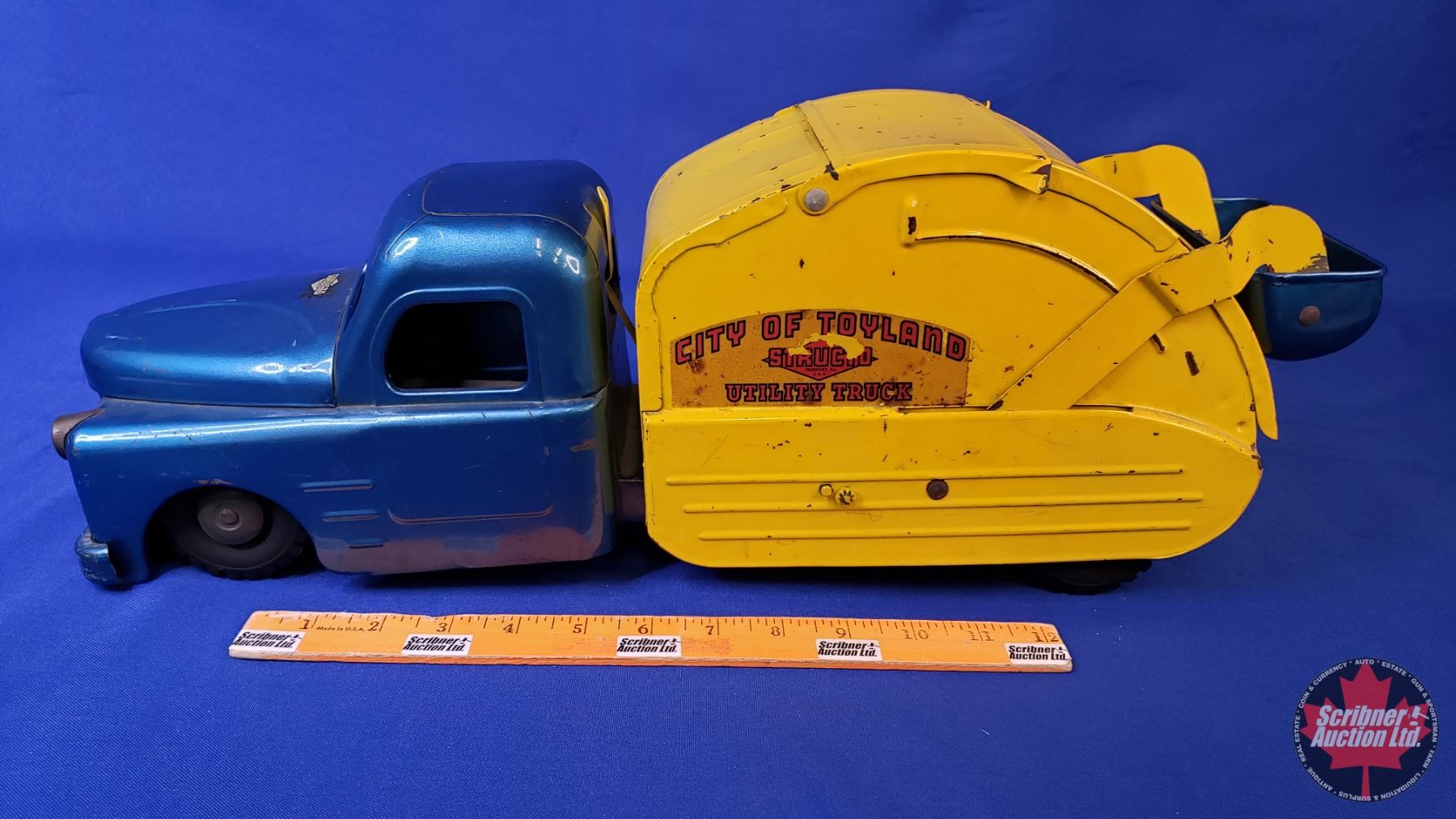 Structo "City of Toyland Utility Truck" (Metal / Blue & Yellow) (7-1/2"H x 5-1/2"W x 22"D) (SEE PICS!)
