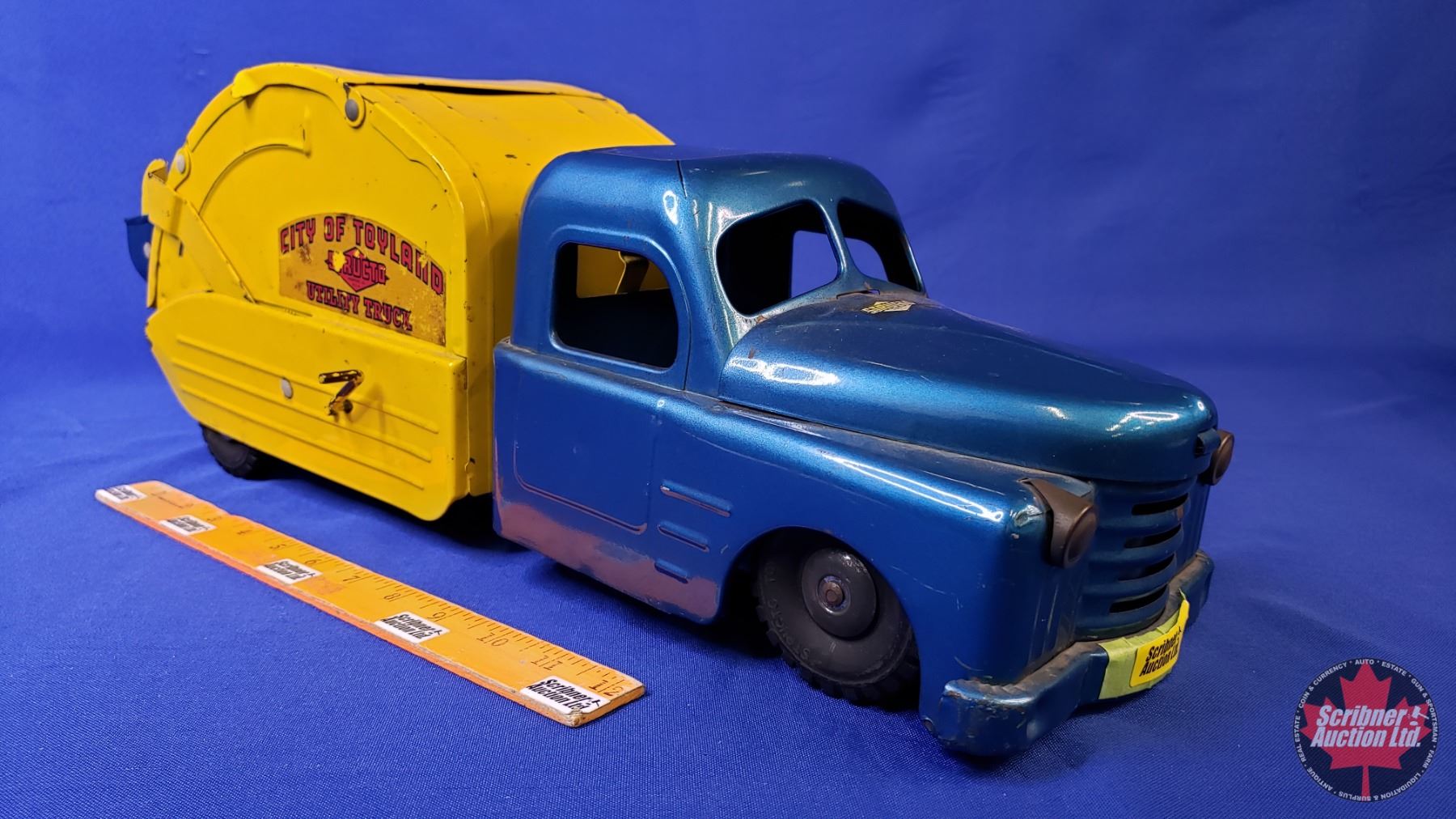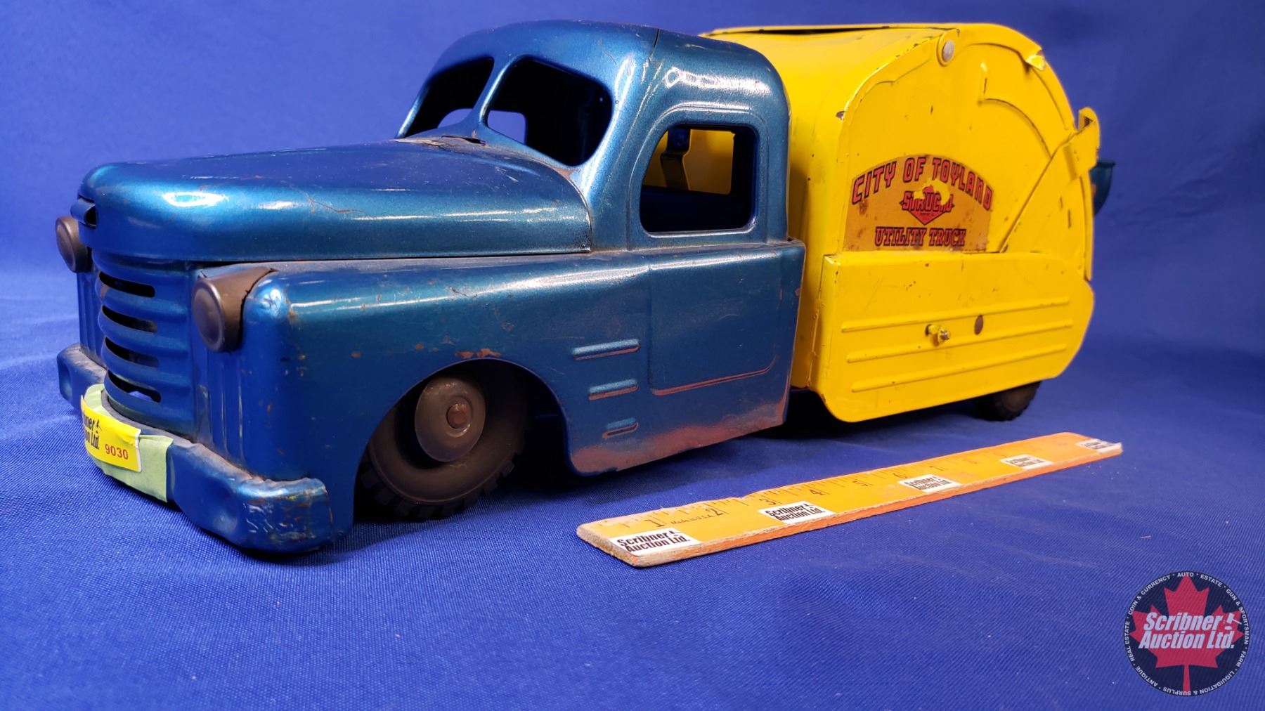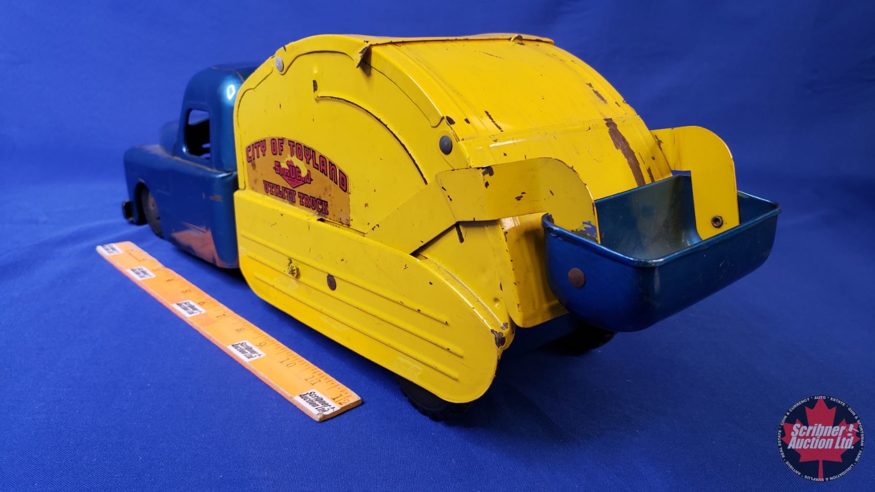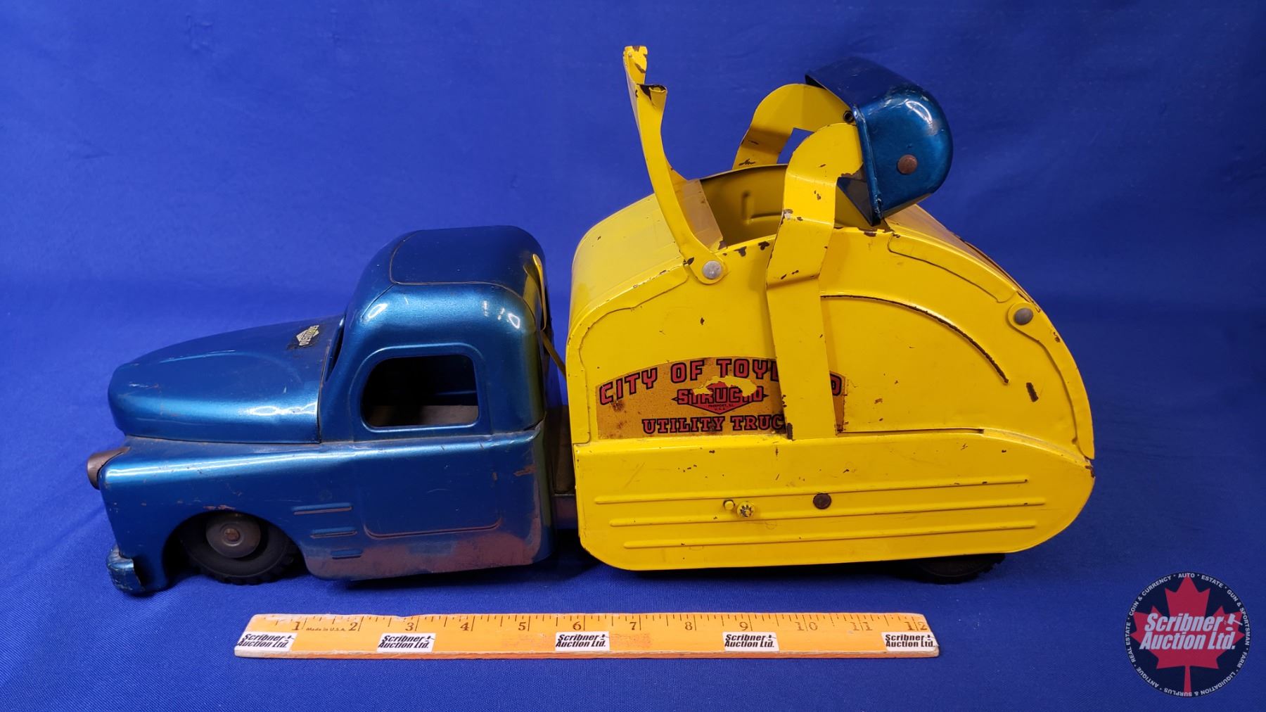 Structo "City of Toyland Utility Truck" (Metal / Blue & Yellow) (7-1/2"H x 5-1/2"W x 22"D) (SEE PICS!)