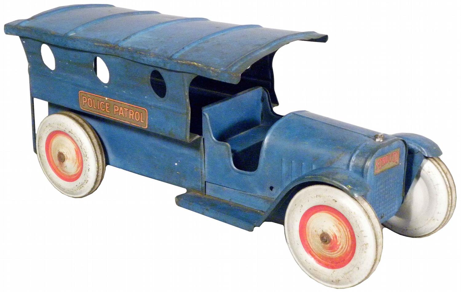 Structo Pressed Steel Police Patrol Car. A few minor scratches, wheels faded on passenger side otherwise very good condition. 16 1/4 inches long.
