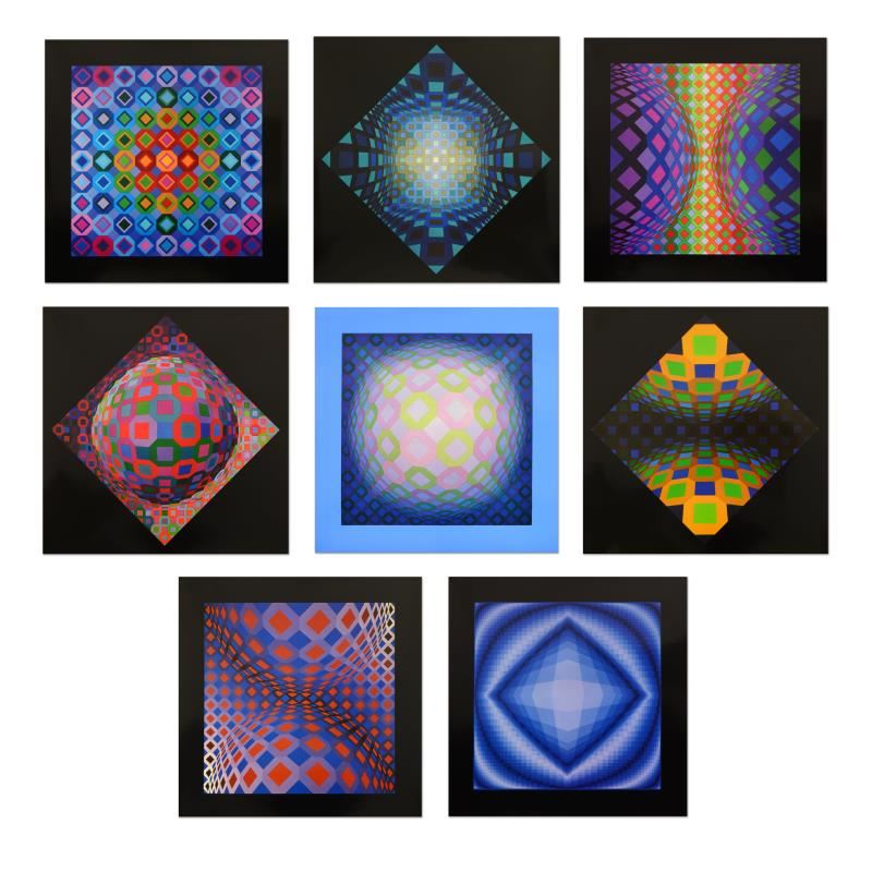 "Structures Universelles de L'octogone Portfolio" includes 8 heliogravure prints on paper from the Editions du Griffon (1975) by Victor Vasarely (1908-1997). Each piece is titled and dated inverso. Each Piece measures approx. 10.5" x 10.5" (image).
