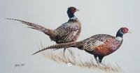 Struting Their Stuff Ring necks by LINDSAY SCOTT colored pencil/paper image 12"x23"