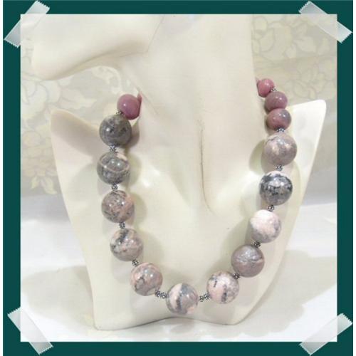 24mm pink opal beads complimented with graduated rhodonite rondells