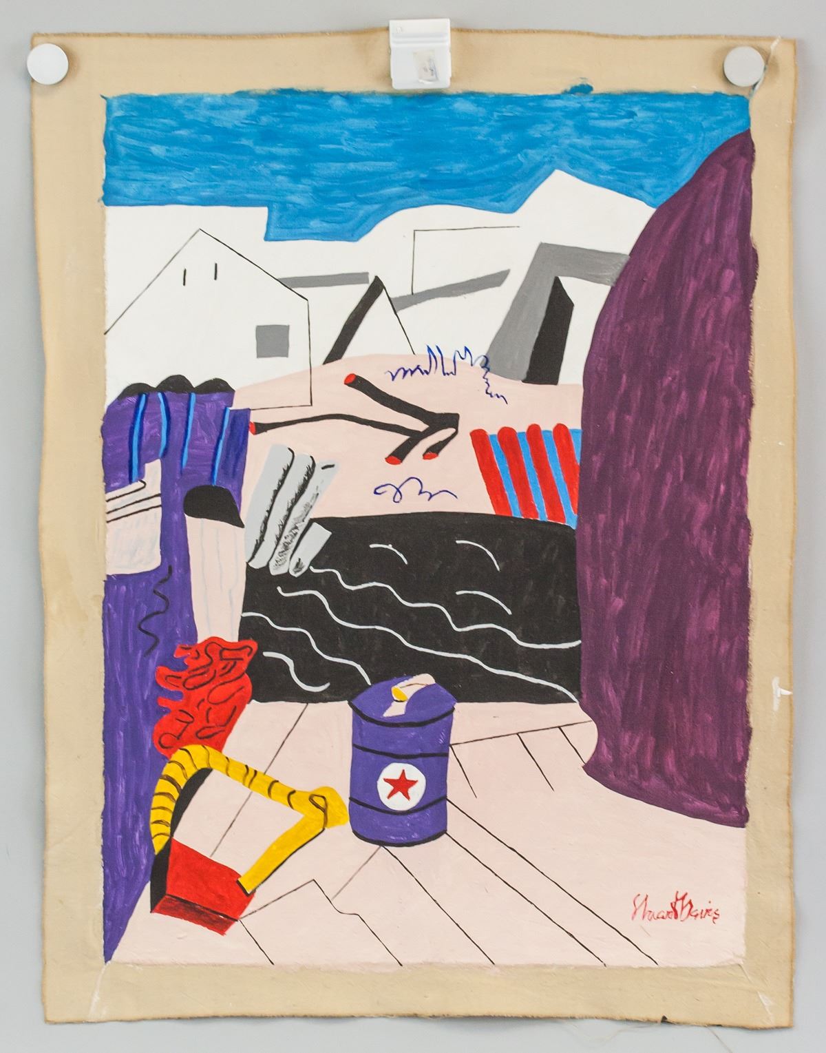 Acrylic on canvas. Featuring an abstract landscape scene. Signed Stuart Davis on the lower right corner. Attributed to Stuart Davis (1892-1964, American). Canvas: 64 x 48 cm (25 x 19 inches). Provenance: This lot carries limited provenance from a Private collection, Bulgaria.