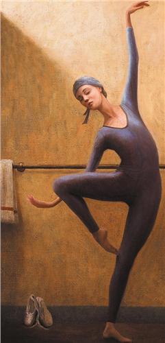 BALLERINA signed lower right oil on canvas laid on board <BR>62 by 32cm., 24.5 by 12.5in.