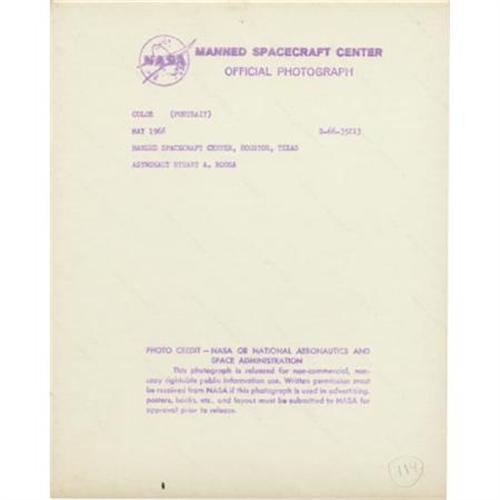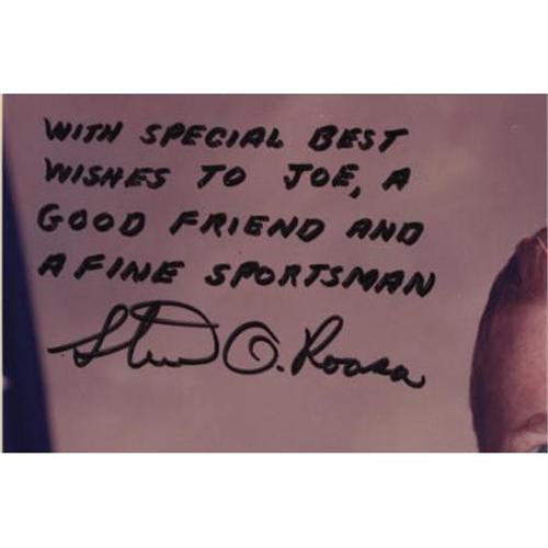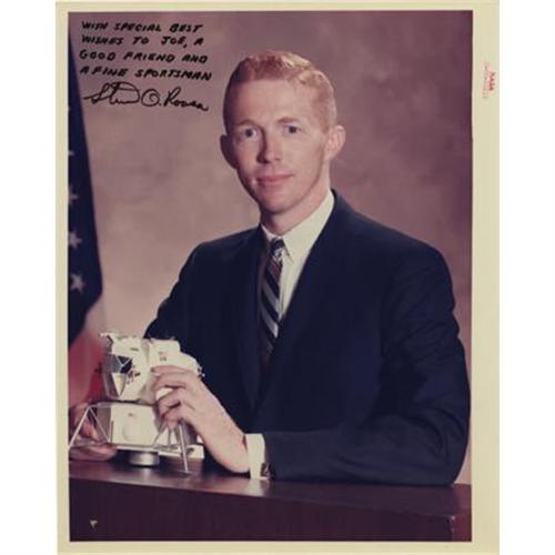 <B></B></I> <B>Stuart Roosa Signed Color Photograph,</B></I> 8" x 10", "<I>With special best/ wishes to Joe, a/ good friend and/ a fine sportsman/ Stu A. Roosa.</B></I>" Apollo 14 Command Module pilot, Stu Roosa died in 1994. <I>From the collection of renowned former physical trainer of the astronauts Joe Garino. This lot is accompanied by a signed certificate of authentication from Garino verifying its provenance.</B></I><BR><BR><b>Shipping:</b> Flat Material, Small (<a target="_blank" href="http://www.heritageauctions.com/common/shipping.php">view shipping information</a>)