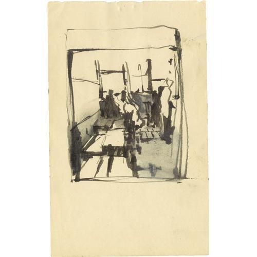 <B>Stuart Sutcliffe Ink Sketch.</B></I> A small, 4.5" x 7" ink sketch of what appears to an abstract take on a bar or restaurant scene. Sutcliffe left the Beatles early in their career to study art in Hamburg. Sadly, he died of a cerebral hemorrhage at the age of 21. The piece is in Excellent condition with very mild wear and tanning.<I>Accompanied by LOA from PSA/DNA.</B></I><BR><BR><b>Shipping:</b> Flat Material, Small (<a target="_blank" href="http://www.heritageauctions.com/common/shipping.php">view shipping information</a>) <BR><BR><B>Important notice