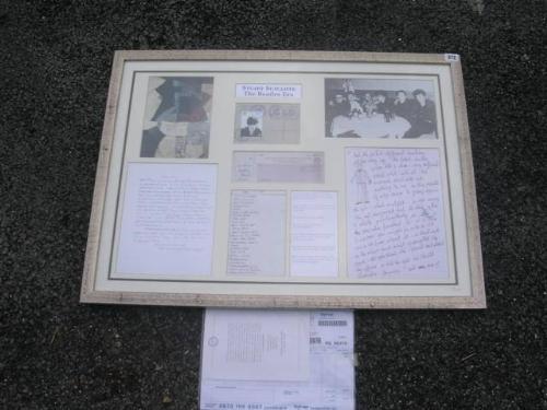 Stuart Sutcliffe The Beatles Limited Edition # 513/4995 glass framed Presentation 24"x32" inc repro Photos, artwork, letter (Stuart acting as Beatles Manager soliciting work), Song list, Cheque, Stuart's Hamburg ID Card, all items pertaining to the early