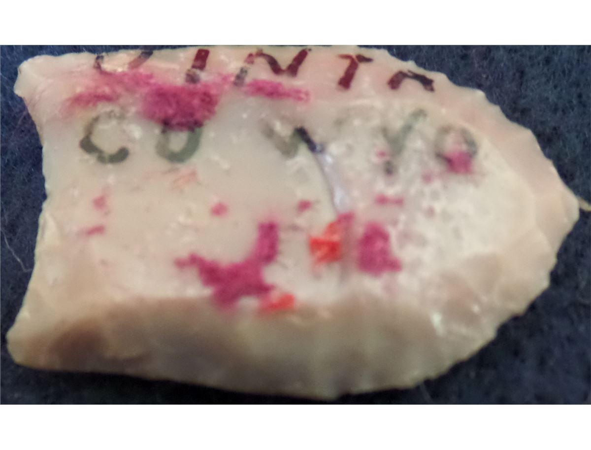 Paleo Man stub Folsom Point from Vinita County, Wyoming. Point is made from chert measuring 1 x 3/4 inches. It appears to be perfect full flute both sides. From Dr. estate in San Diego California. See pictures . Shipping $14.50