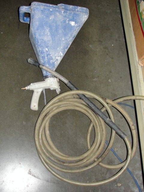 Stucco spraying tool with hoseline