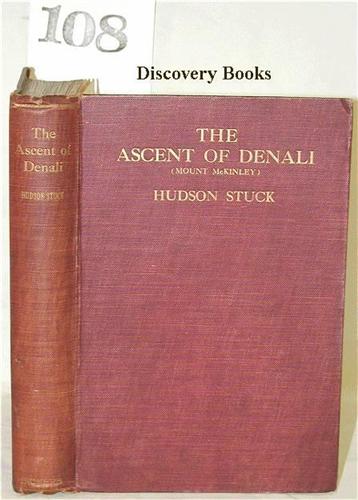 Stuck, Hudson. THE ASCENT OF DENALI (MOUNT MCKINLEY). A NARRATIVE OF THE FIRST COMPLETE ASCENT OF THE HIGHEST PEAK IN NORTH AMERICA. London: Bickers & Son 1914 xix,188pp. Photogravure frontis, photo plates, folding map. Original cloth, t.e.g., slightly dull. Clean & tight.