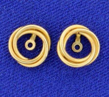 14K yellow gold, they are 3/8 inch in diameter. 0.8g