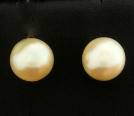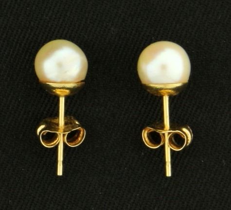 In 14k yellow gold. 5.7mm pearls with excellent warm color and luster. With friction backs. 0.8g.