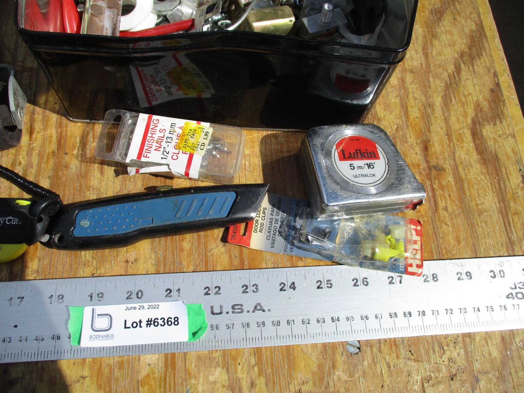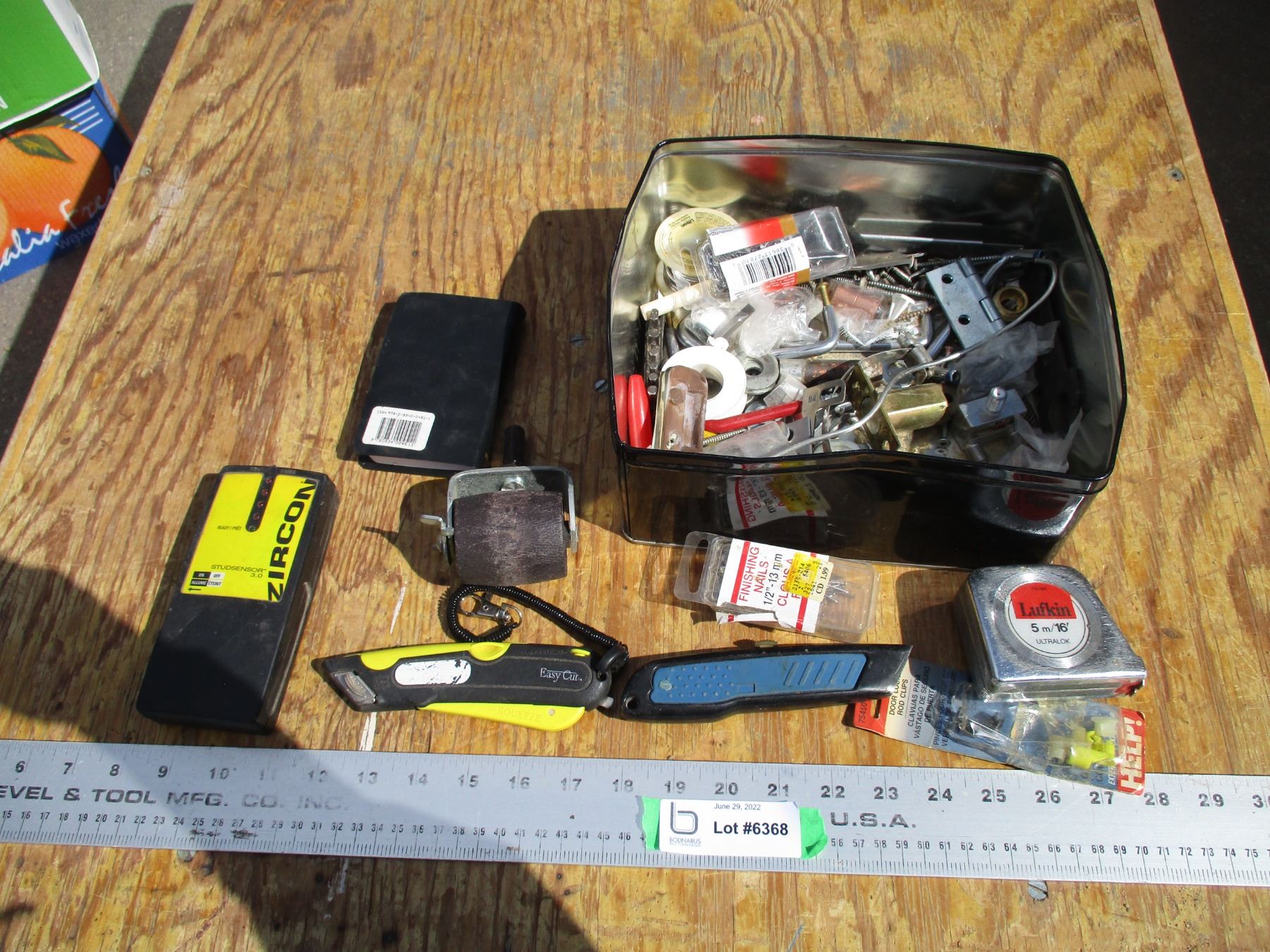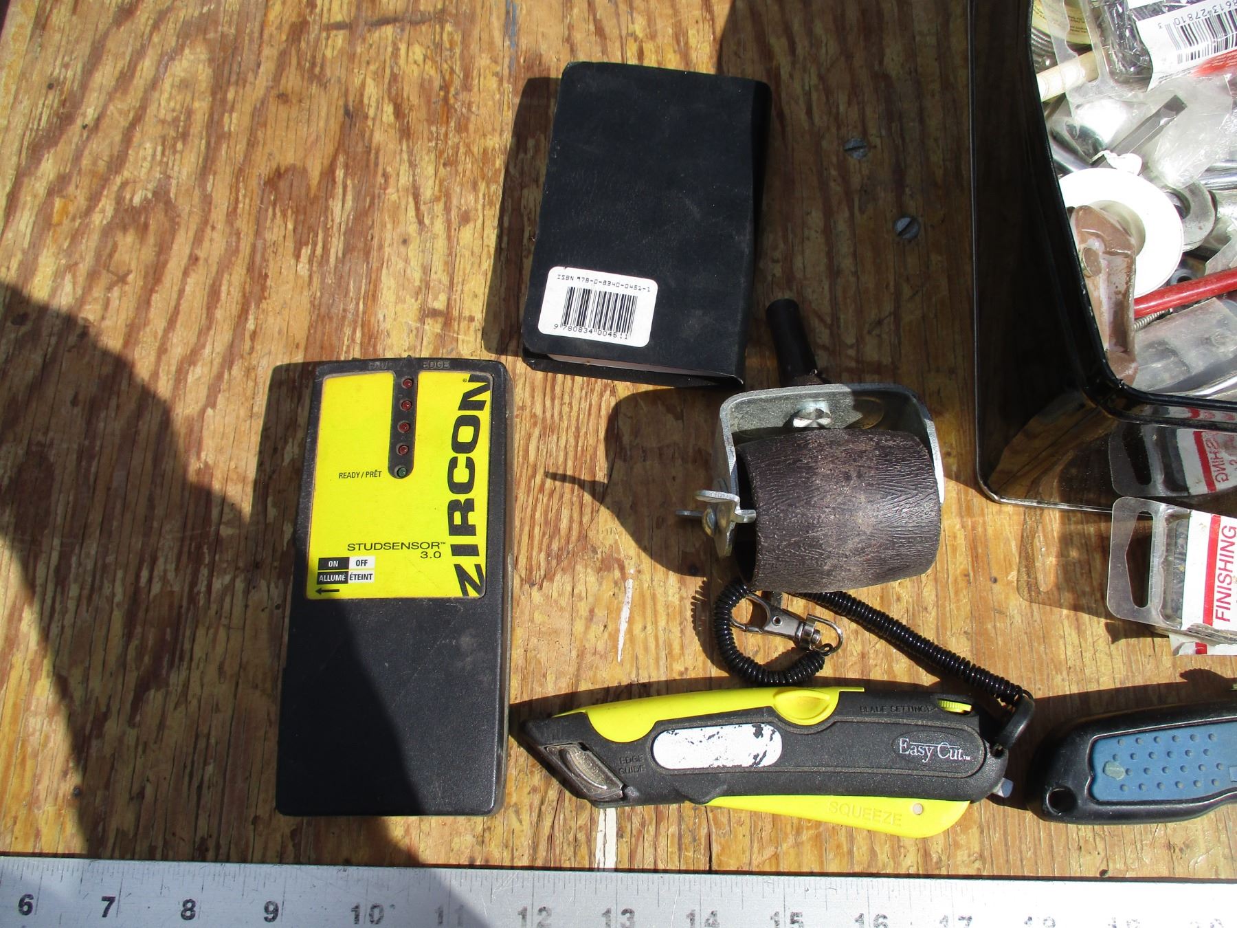 Stud finder, tape measure, misc