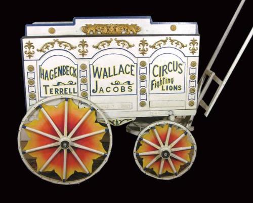 Studebacker wagon chassis converted to a circus wagon with thills, the box measures 36 inches tall and 36 inches long. Good Cond.