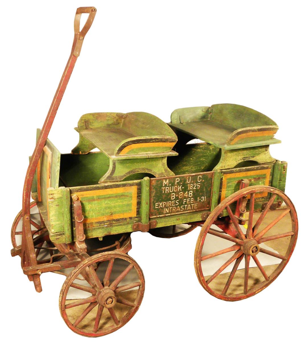 Studebaker Childs Wagon, two seats. Comes with sled runners and goat tongue. Good original condition. 76 X 76 X 28 inches w/handle.