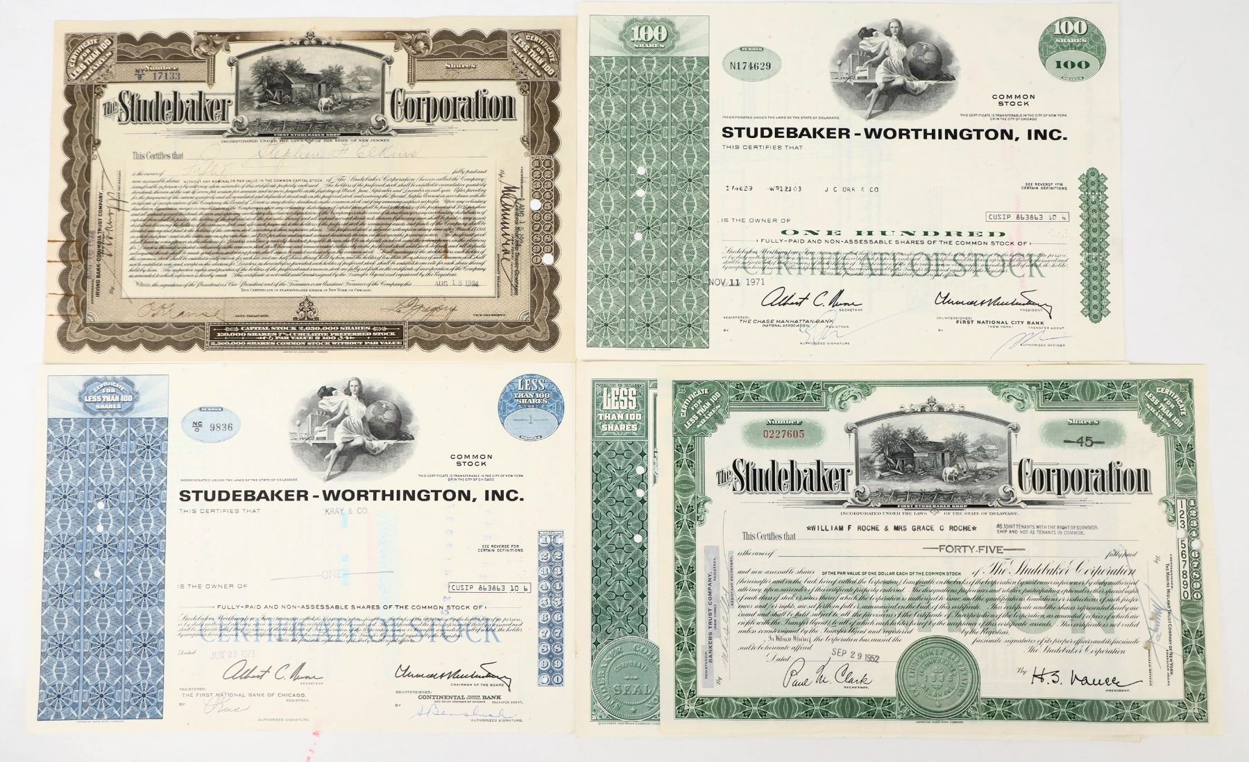 Lot of 5 different. Issued 1924, 1952, 1967, 1971, and 1973 (latter two are Studebaker-Worthington, Inc.). The Studebaker Corporation was an American automobile manufacturer based in South Bend, Indiana, with roots dating back to 1852 as a wagon and carriage maker. Transitioning to automobiles in the early 1900s, Studebaker became known for producing durable, stylish, and innovative cars, including models like the Champion and Avanti. Despite its reputation for quality and design, financial difficulties and industry consolidation led to the company's closure in 1966, marking the end of one of America's oldest and most storied automakers.