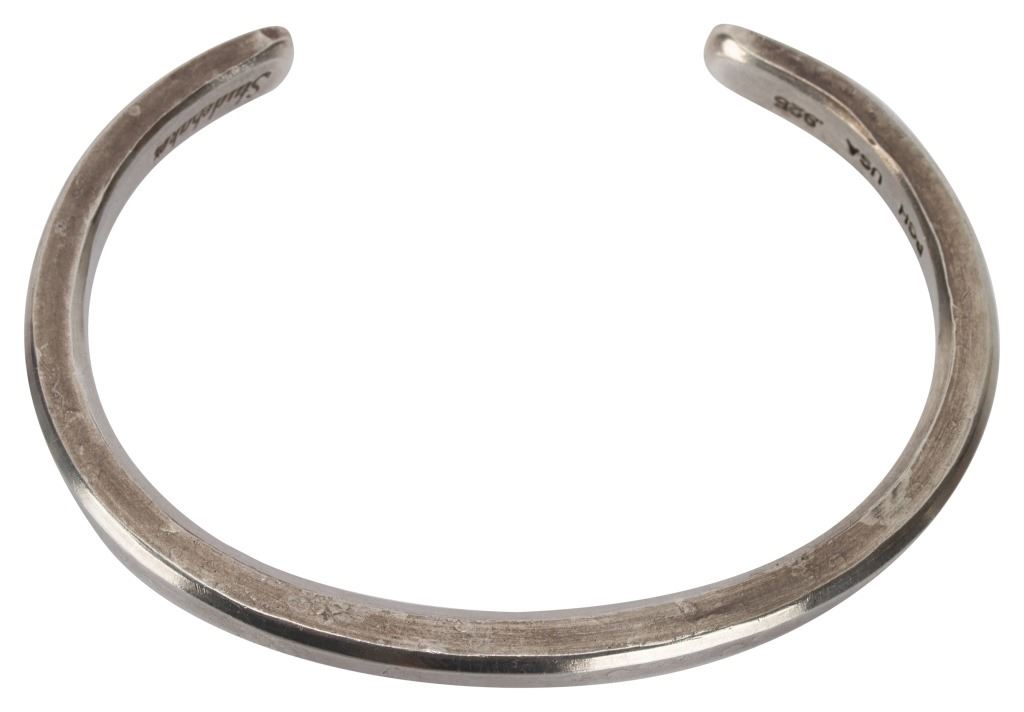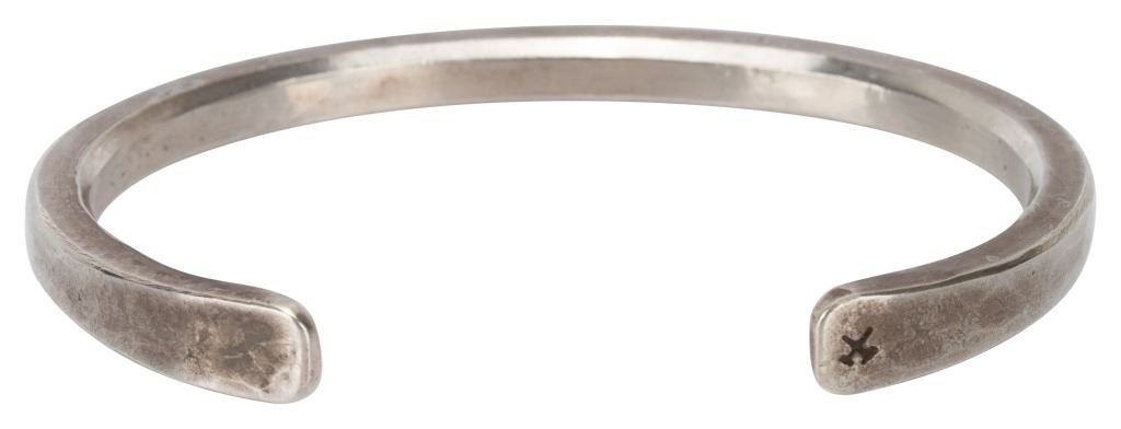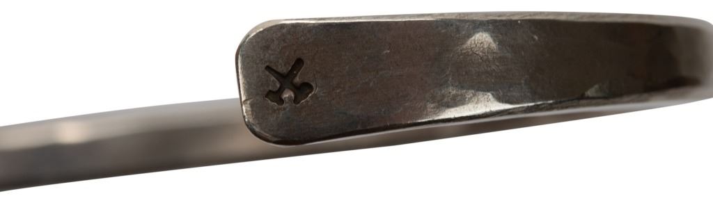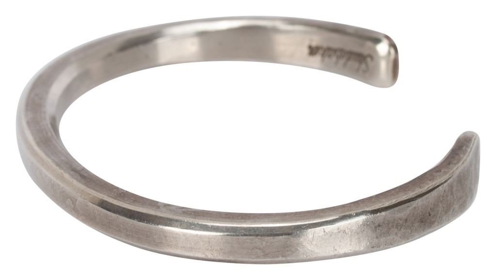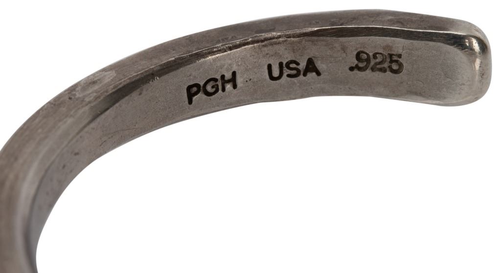 Item/Description: Signed hand-forged studio artisan cuff bracelet by Studebaker Metals of Pittsburgh, Pennsylvania. Otto Cuff. Exceptional workmanship. Sleek, modernist. Unisex. Masterful craftsmanship. Hallmarked: PGH USA .925 Studebaker, crossed hammers logo.