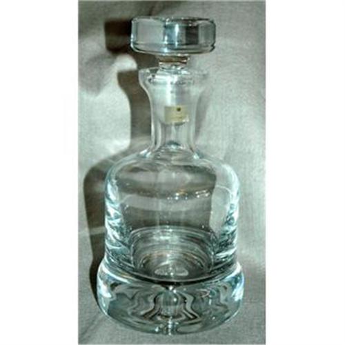 Outstanding heavy hand blown crystal decanter. This is suited as a ship's decanter due to the heavey bottom. It is made by Studio Nova of Poland. The thick botton has a high pontil that adds to the design. When look at it through the thick glass base the pontil looks like an hour glass. It is 10 1/4" high. It weighs 5 pounds 13 ounces! <p> The condition is excellent like new.