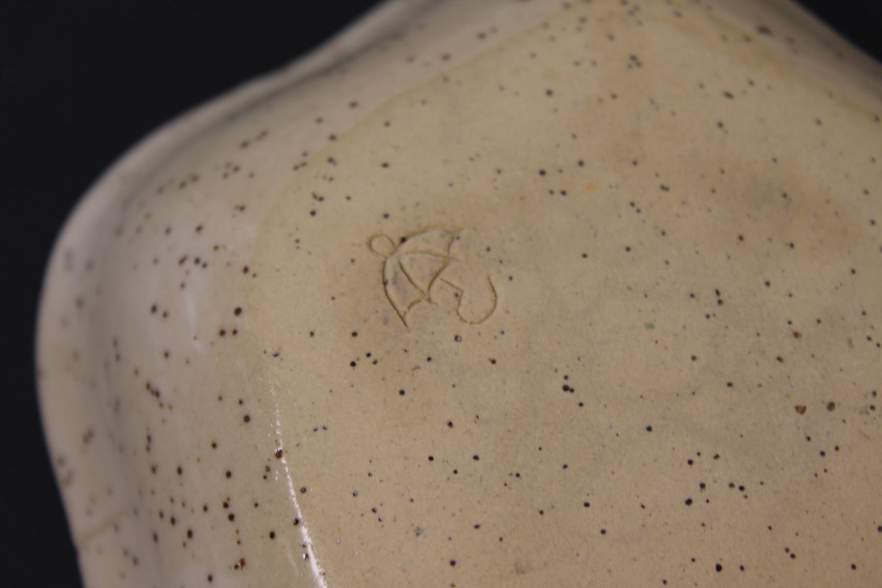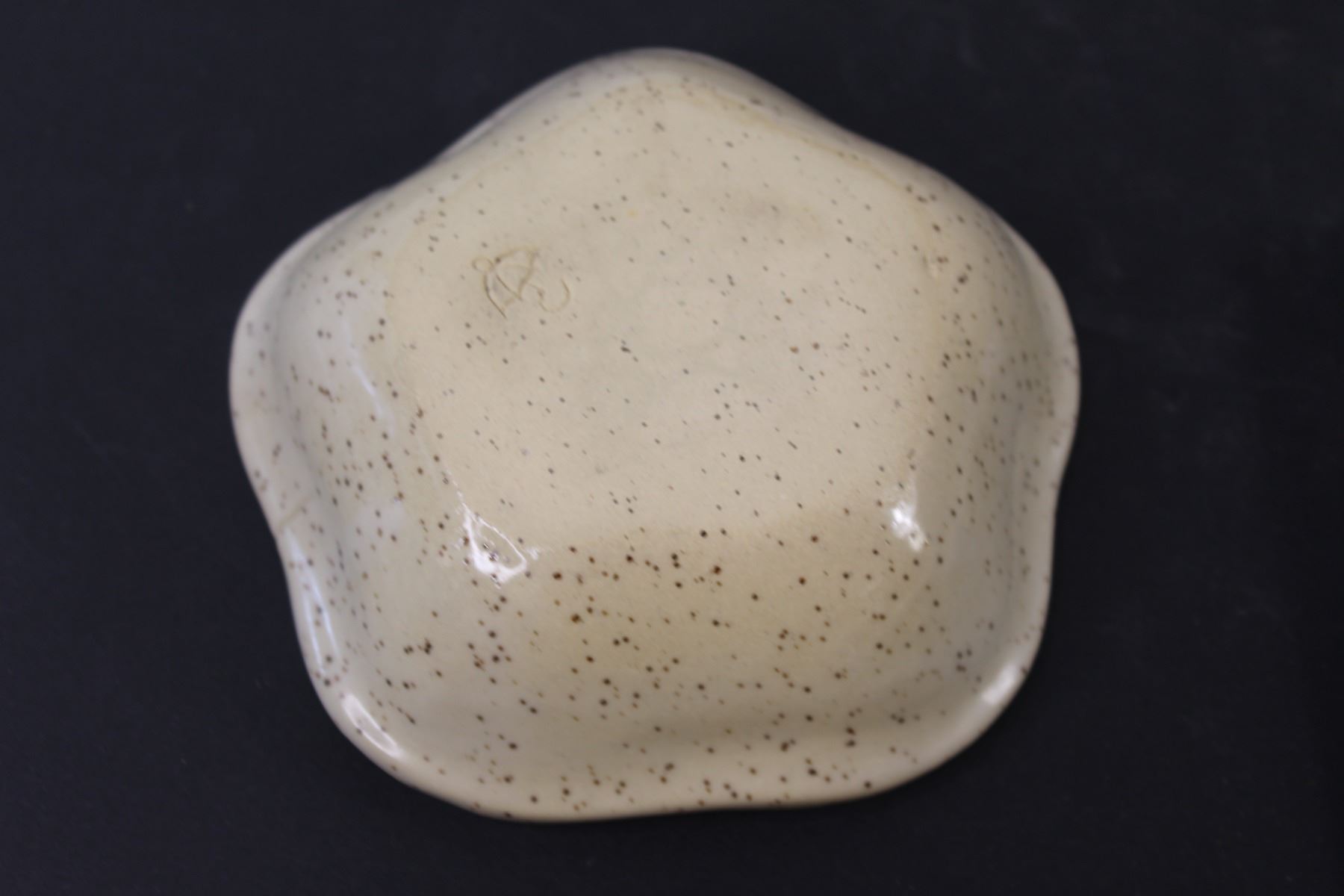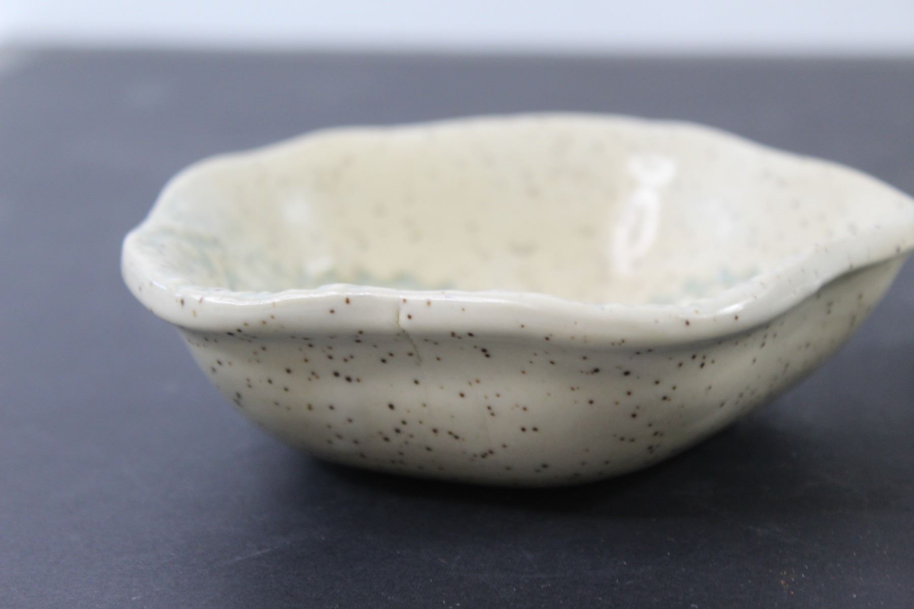 Studio Pottery Bowl, Stainless Steel Oval Flat Dish With Sardine Spoon