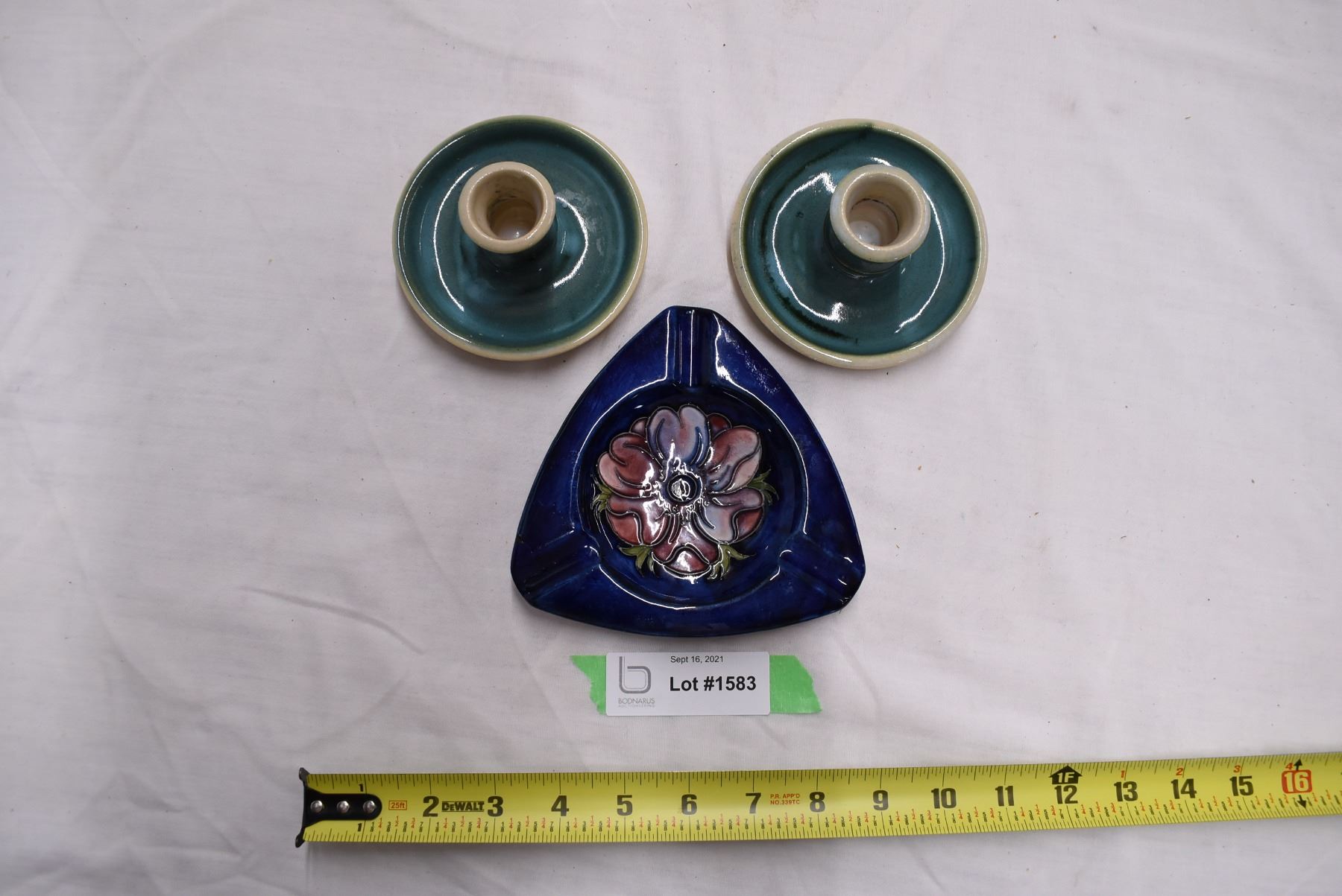 Studio Pottery Candle sticks with Moorcroft ash tray