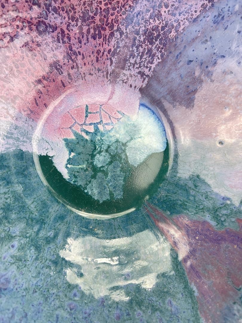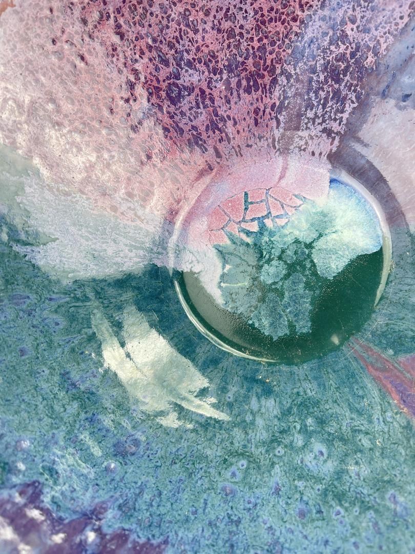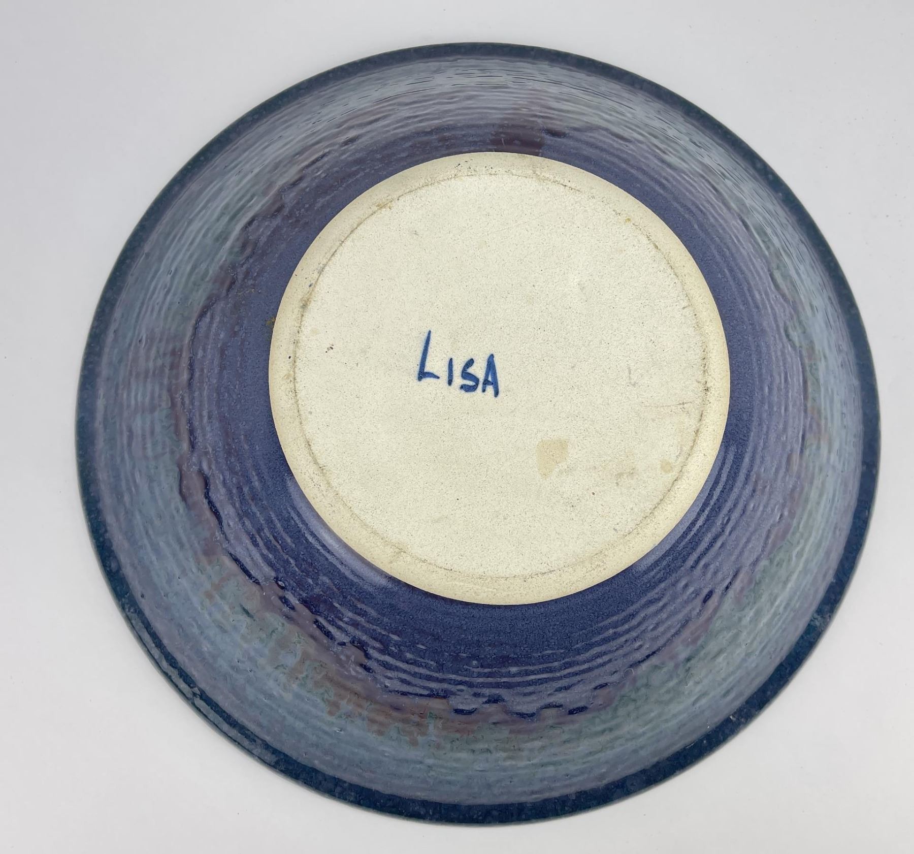 Signed Lisa. Cracked. 18" diameter, 7" tall.