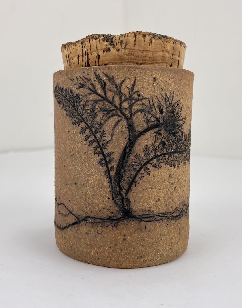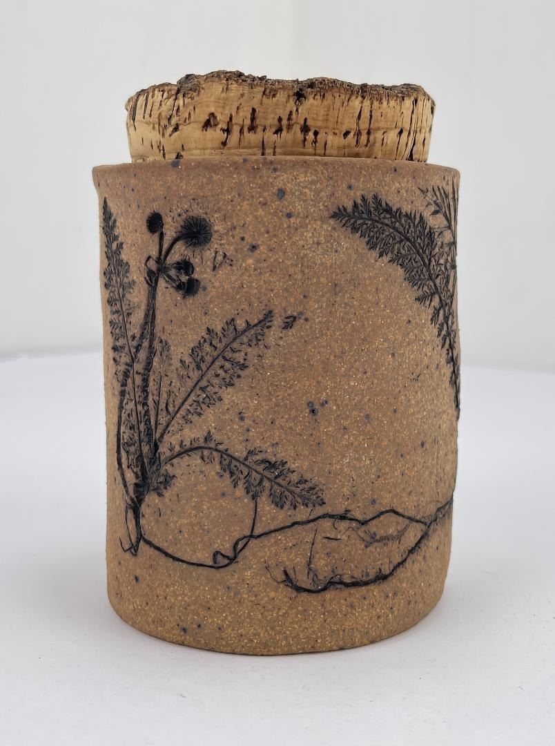 In the style of Raymonde Leduc. Signed as shown. 4.75" tall with cork.