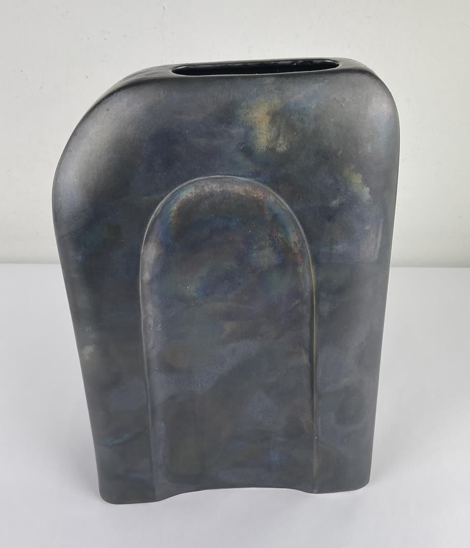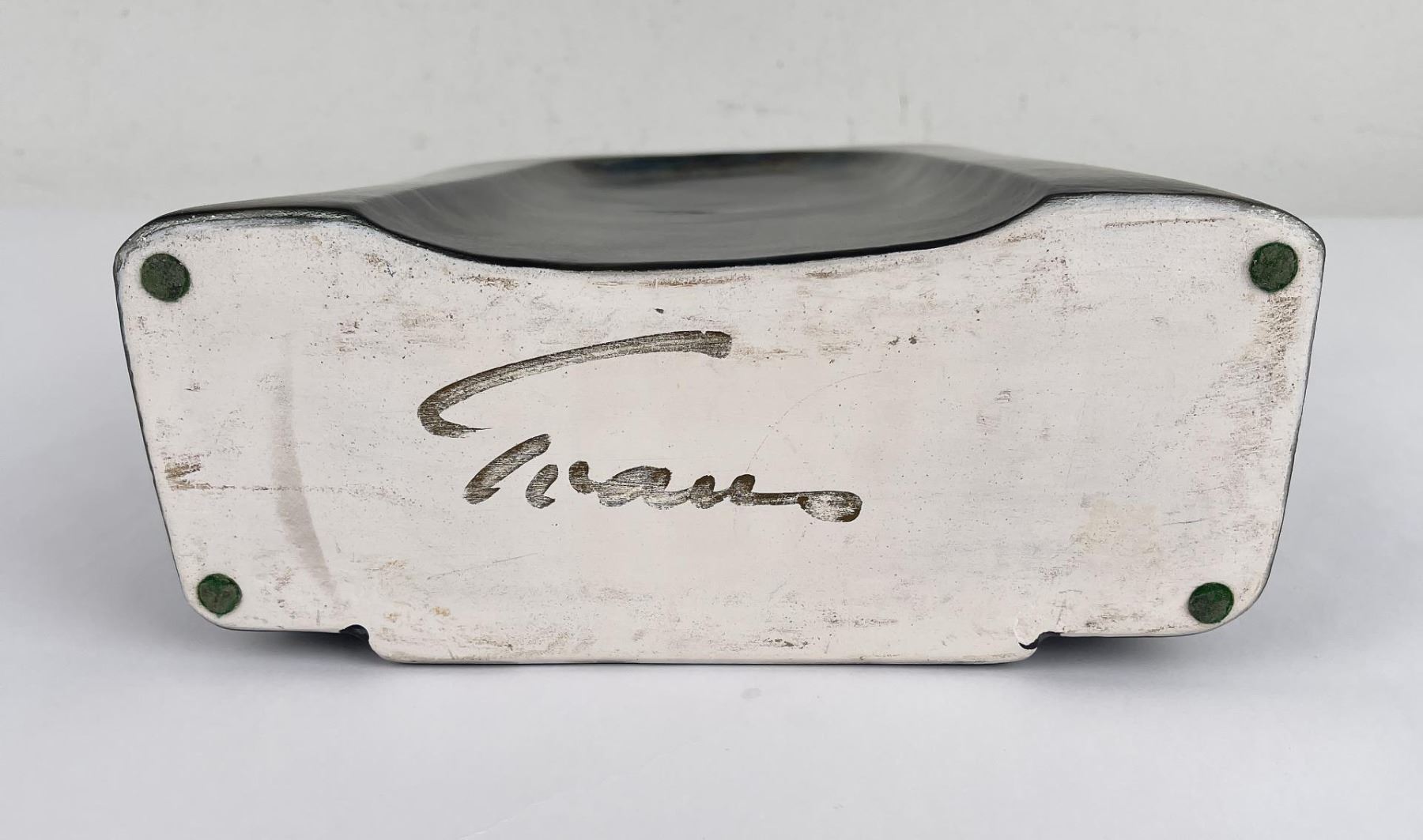 14.5" tall. 10.25" long, 3.25" wide. Signed as shown.
